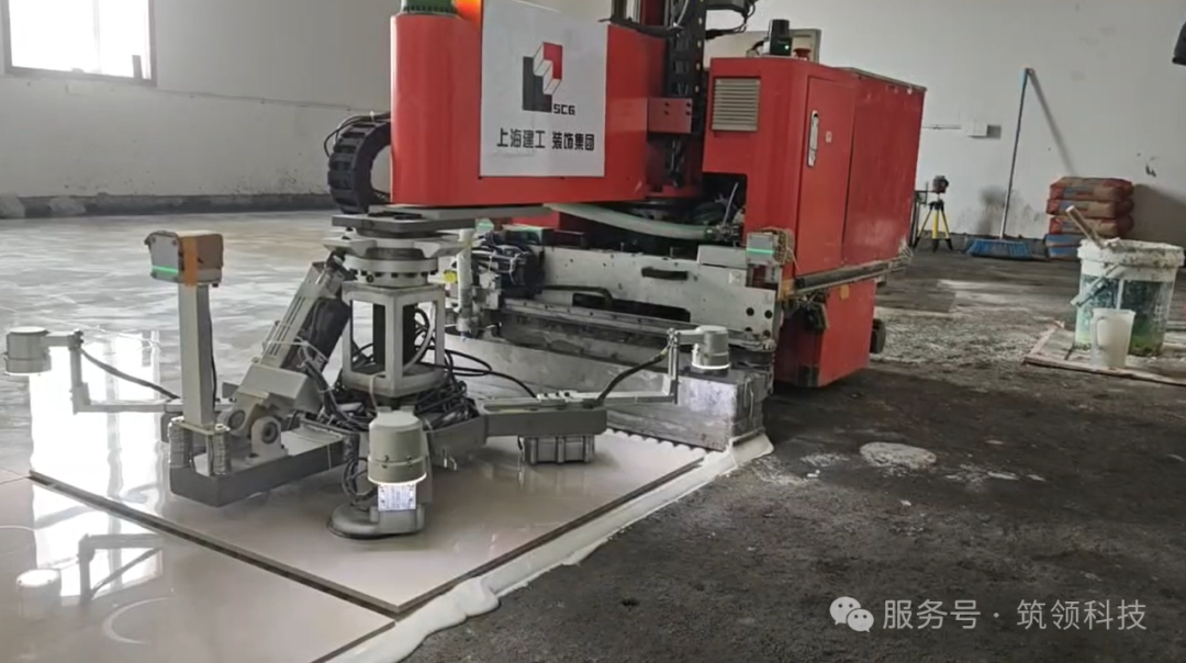 由筑领科技与上海市建筑装饰工程集团有限公司联合应用的地砖铺贴机器人在现场展示了其智能化的铺贴流程。通过智能识别系统,快速分析地面情况,精准计算地砖的铺贴位置,实现高效、精准的铺贴作业。其操作简便,只需简单设定参数,就能适应不同尺寸和材质的地砖铺贴。同时上海建工装饰集团在智能建造领域积极探索,联合筑领科技进行石材铺贴智能化施工,目前拥有多项相关专利,已在项目上进行施工应用。